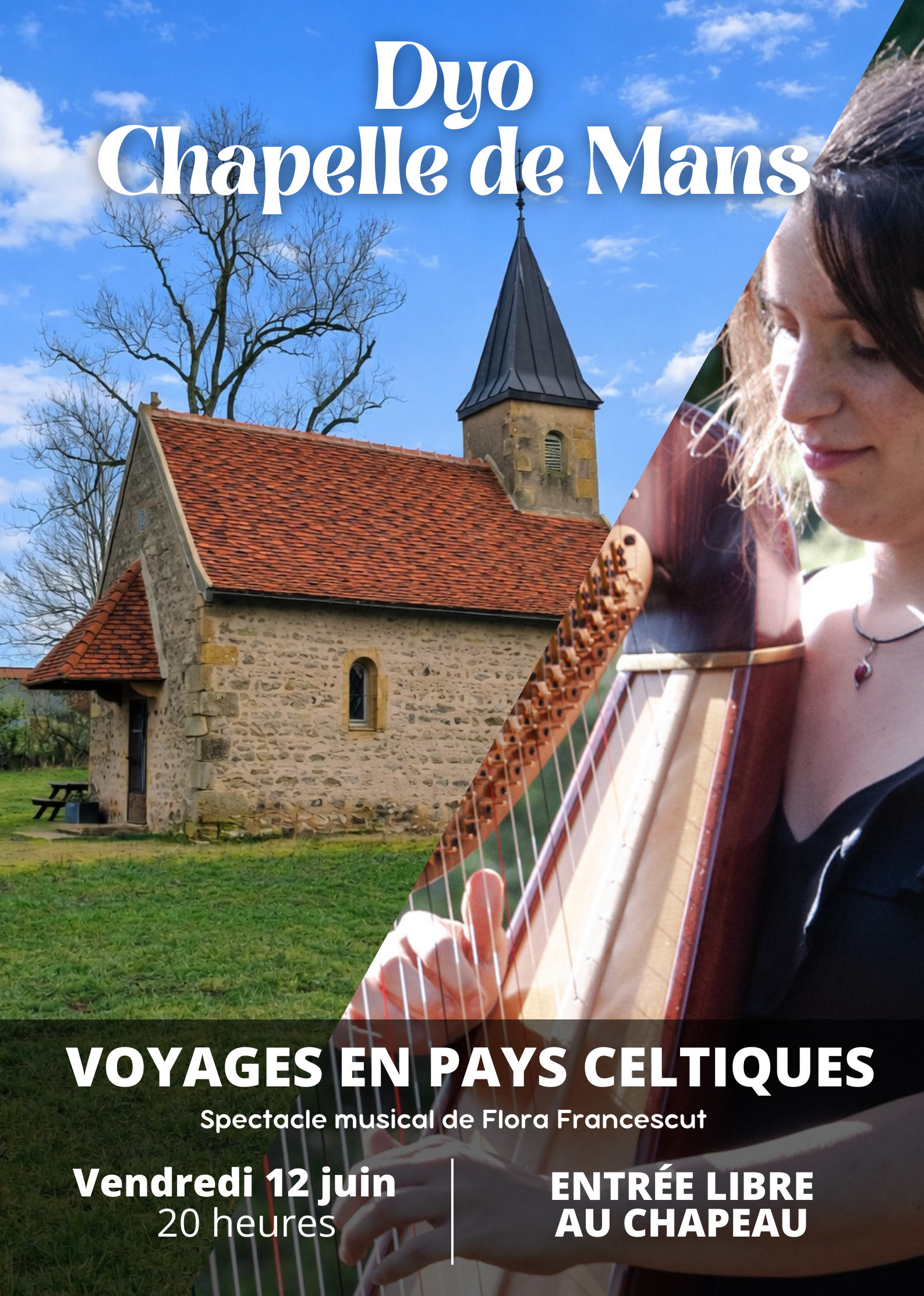 Concert de harpe devant la chapelle de Mans